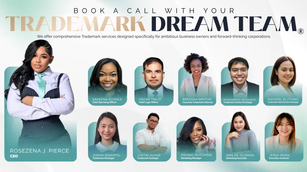 That's why our team of seasoned professionals, Your Trademark Dream Team®, is here to handle every step of the trademark process for you, from conducting thorough searches to filing applications and monitoring for infringements.